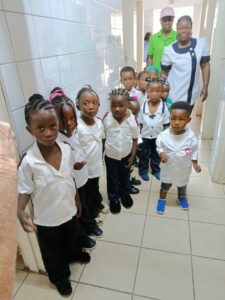 We werden deze ochtend wakker in een aanvankelijk witte wereld, maar dit veranderde heel snel. Een groep Duitsers vond het weer niet goed genoeg en vertrok een dag eerder dan gepland. De diehards lieten zich niet uit het veld slaan en werden beloond met een heerlijk zonnetje tijdens de dorpswandeling met maar liefst 7 “gidsen” We begonnen bij de PC Hoofdtstraat van het dorp Malealea. Zeer eenvoudige golfplaten hokjes die als winkeltjes fungeerden. Onderweg stopten we o.a. Bij een lokale bierbrouwerij waar we mochten proeven van haar brouwsel. Ook het gebruik van planten als medicijn kwam ter orde. Overal kinderen en ook veel koeien die vrij rondliepen. Maar 1 waterput voor het hele dorp met zijn 500 inwoners. De toiletten hebben een gat van 5 meter in de grond met een ontluchtingspijp aan de achterkant. Sinds het vorig jaar hebben ze pas elektriciteit in de rondavels en huisjes gekregen. Even verderop hadden we een gesprek met het dorpshoofd. Door een vallei liepen we naar een ander dorp in deze vallei met totaal 15 dorpjes. Hier bezochten we een museum met een interessante uitleg over het leven toen en nu. Lopend langs de school en de kinderopvang kwamen we bij een winkeltje waard lokaal gemaakter producten te koop waren. De lunch werd vandaag weer door Shaun verzorgd. Een heerlijke soep als start met daarna Impala, gemengde groenten, verse aardappelpuree en rode biertjes. Natuurlijk koffie en thee ter afsluiting. Er kwamen weer vele handjes helpen bij de afwas na afloop. Twee locals kwamen uitleg geven over hoe zij lokaal de mensen op verschillende manieren helpen met giften van buitenaf. De armoede hier is echt heel groot. Diverse deelnemers aan deze reis hadden spulletjes meegebracht voor de schoolkinderen die door hun in ontvangst genomen werden. Later op de middag was er nog een optreden van een lokaal koor en zaten de meesten aanvankelijk nog lekker in het zonnetje. Vanavond weer lokaal eten in het restaurant van de lodge.