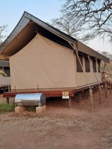 Deze dag stond in het teken van een 2e gamedrive maar nu met een 4 wheel drive jeep. Om 6 uur vertrokken de drie jeeps opnieuw het park in om te kijken of er nog andere dieren gesport konden worden. Uiteindelijk kwam de leeuw ook in beeld. Terwijl iedereen op safari was gingen Shaun en Paul samen met de chauffeur in de weer om o.a te tanken en inkopen te doen voor de komende dagen. Vanaf morgen wordt er namelijk regelmatig in de boordkeuken van de truck gekookt. Tegen 15.30 uur kwamen de gasten weer terug van hun tour en konden ze wederom relaxen aan het zwembad op om een siësta te houden. Met een dagtemperatuur van rond de 39 graden was het lekker om af te koelen in de Cabana of aan het zwembad. Nadat de rangers met een mooie fooi beloond waren voor het werk konden zij ook huiswaarts keren. Het avondeten was deze keer weer gewoon binnen.